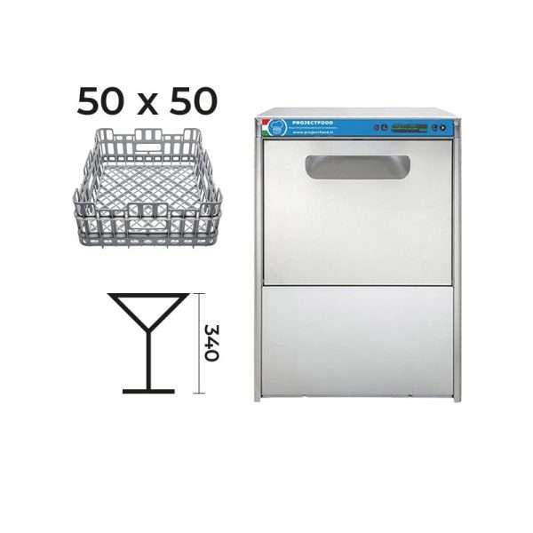 Lavavajillas electrónico monofásico con cesta 50×50 cm completo de dosificador limpiador y abrillantador