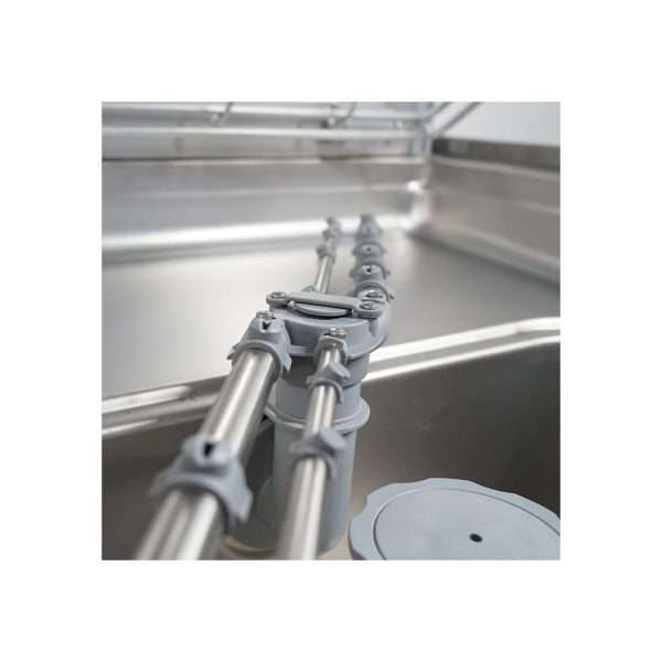 Lavavajillas electrónico con capota con cesta 50×50 cm y brazos inox completo de dosificadores + bomba de desagüe
