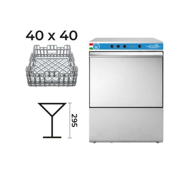 Lavavasos mecánico con cesta 40×40 cm completo con dosificador limpiador y abrillantador + bomba de desagüe