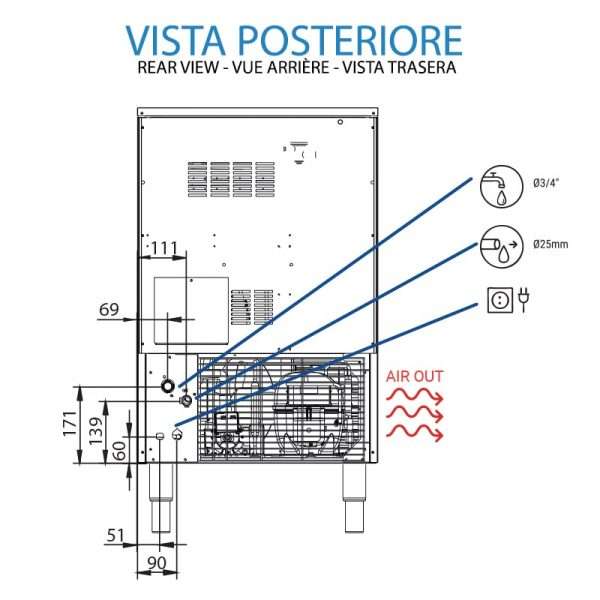 - Alimentación monofásica 220-240V 50 Hz con enchufe Schuko incluido;