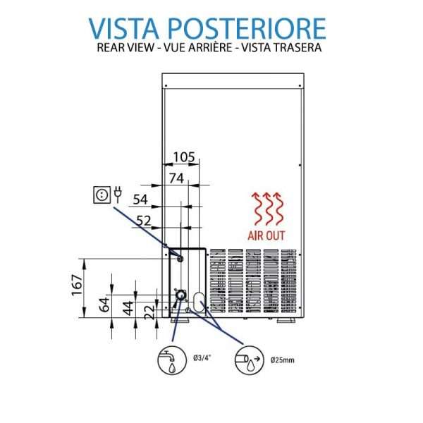 - El sistema de producción de paletas, con evaporador de pedúnculos, es el único sistema capaz de garantizar el correcto funcionamiento de la máquina de hielo incluso en presencia de aguas particularmente duras, ricas en caliza e impurezas;