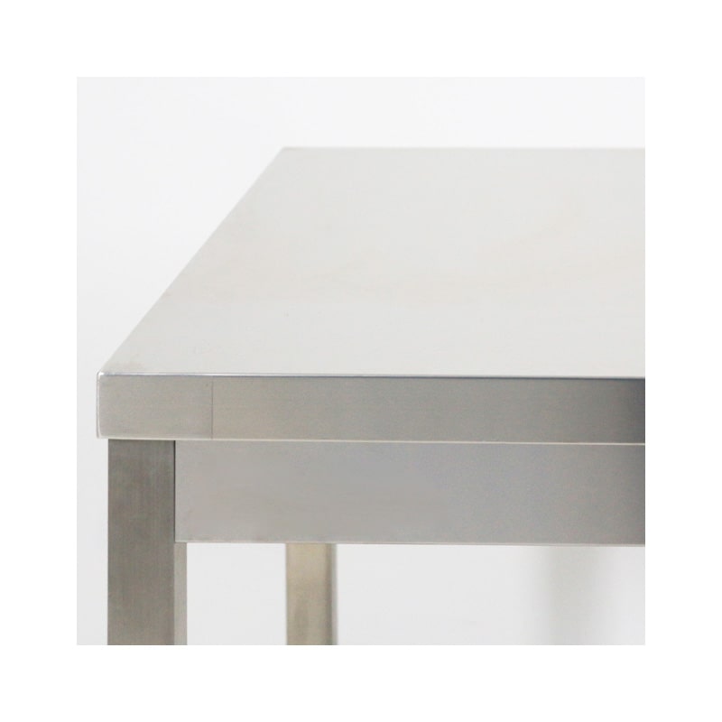 La mesa tiene una robusta estructura de acero inoxidable – AISI 430 con acabados de Scotch Brite.