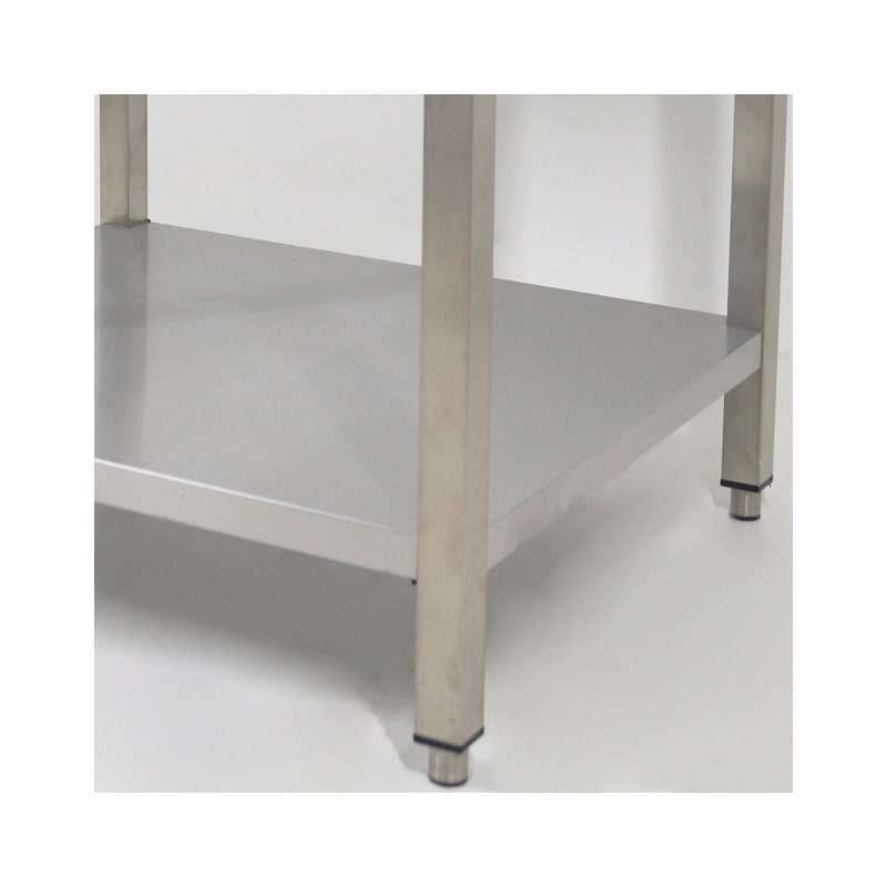 Mesa abierta de acero inoxidable con estante de fondo sin peto trasero L700xP700xH850 mm – línea basic