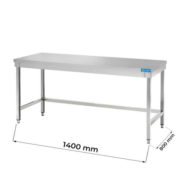 Mesa abierta de acero inoxidable sin estante de fondo sin peto trasero L1400xP800xH850 mm – línea basic