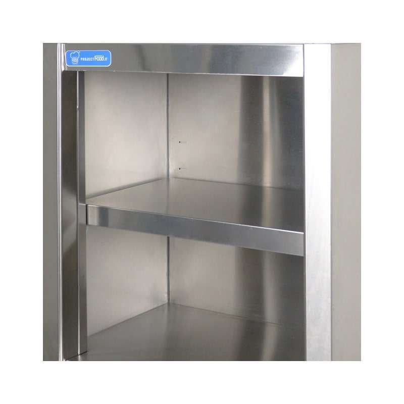La mesa abierta con dos estantes tiene una estructura robusta de acero inoxidable – aisi 430 con acabados de scotch brite.