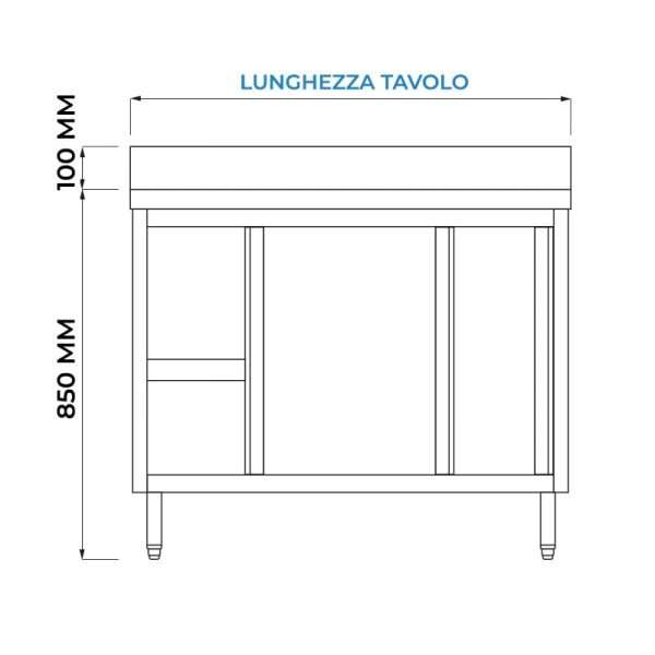 La mesa con puertas tiene una estructura robusta de acero inoxidable – aisi 430 con acabados de scotch brite.