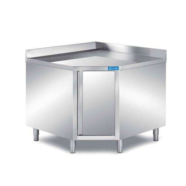La mesa con puertas de esquina tiene una estructura robusta de acero inoxidable – AISI 430 con acabados Scotch Brite.