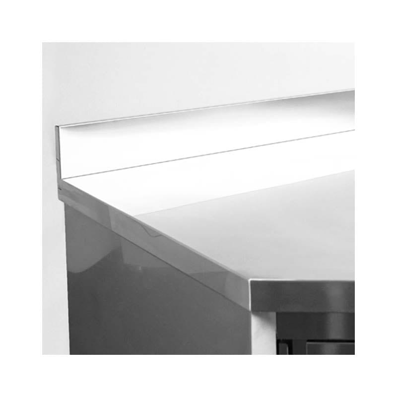 El peto trasero posterior de acero inoxidable de la mesa tiene una altura de 10 cm.