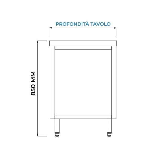 Mesa de acero inoxidable con puertas sin peto trasero L600xP600xH850 mm – línea basic