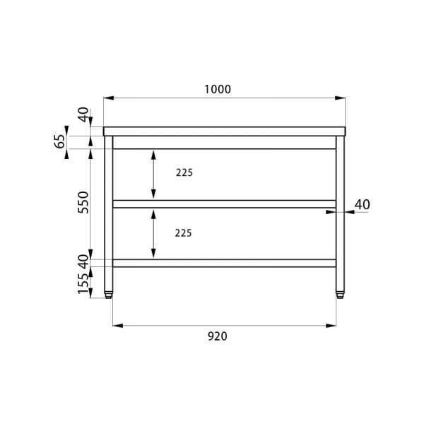Mesa en acero inox abierta con N.2 estantes L1000xP600xH850 mm – linea premium