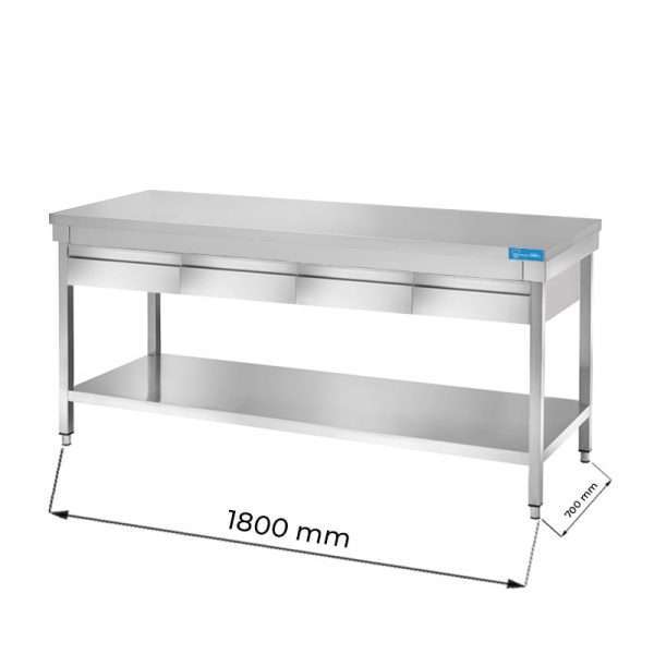 Mesa en acero inox con N.4 cajones con estante inferior L1800xP700xH850 mm – linea premium