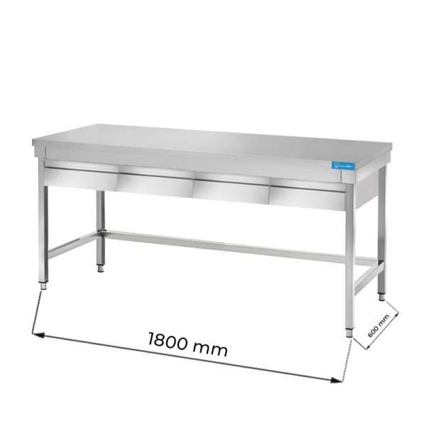 Mesa en acero inox con N.4 cajones sin estante inferior L1800xP600xH850 mm – linea premium