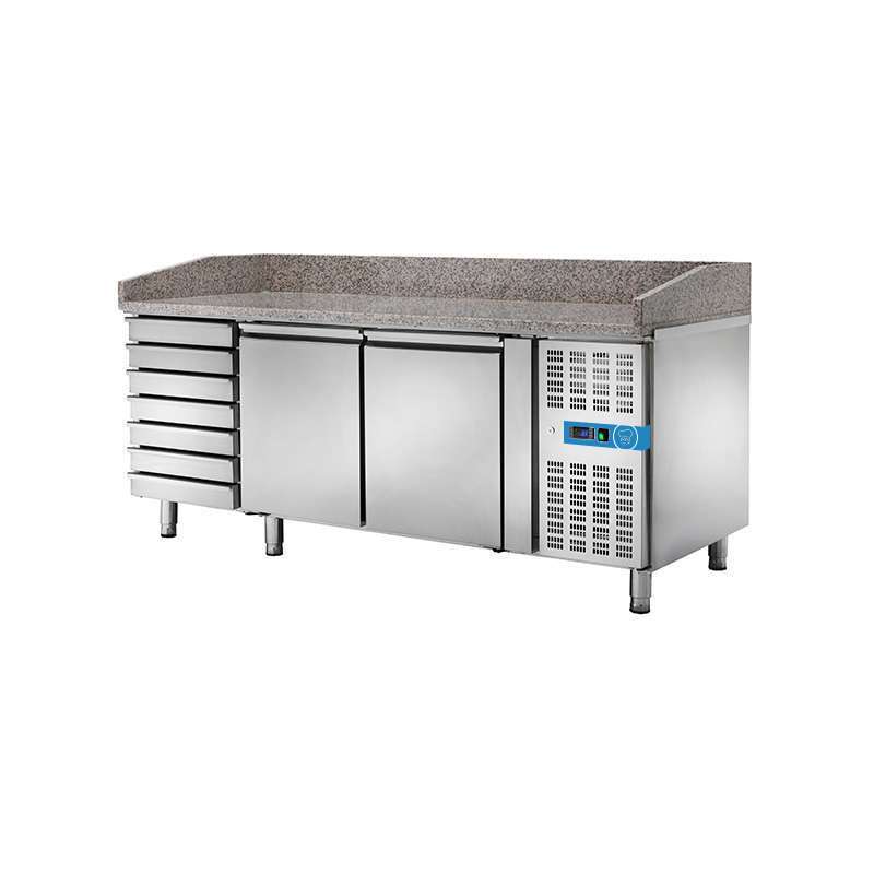 Mesa pizzería refrigerada con n° 2 puertas EN 60×40 + 7 cajones sin vitrina expositora