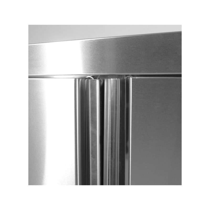 El mueble colgante con puertas batientes tiene una estructura robusta de acero inoxidable AISI 430 con un espesor de 18/10 con acabado Scotch Brite.