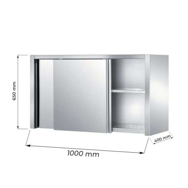 Mueble colgante con puertas correderas de acero inoxidable con 1 estante L1000xP400xH650 mm – línea basic