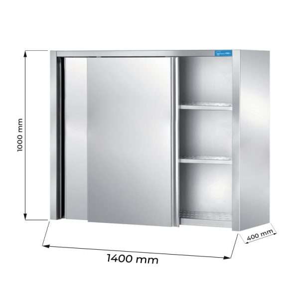 Mueble colgante con puertas correderas y escurridor de acero inoxidable con 2 estantes L1400xP400xH1000 mm – línea basic
