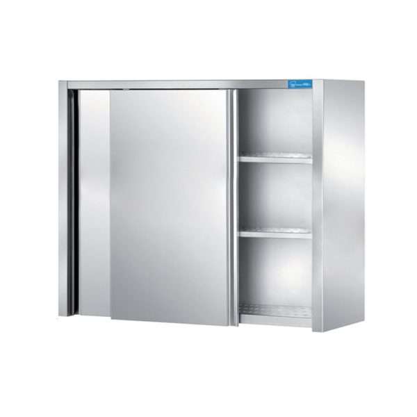 Mueble colgante con puertas correderas de acero inoxidable con 1 estante L1400xP400xH650 mm – línea basic