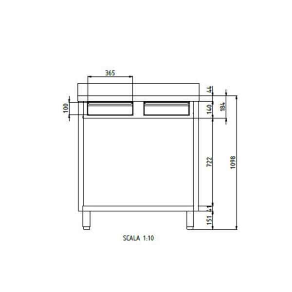 Banco trasero para máquina café de acero inoxidable con tolva batiente de filtro y cajón de servicio L1000xP700xH1100 mm