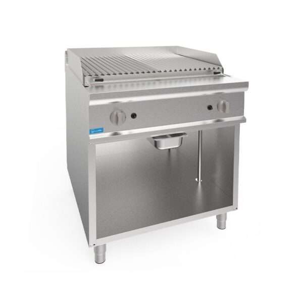 La parrilla es de acero inoxidable en forma de “V” para la recogida de las grasas de la cocción.