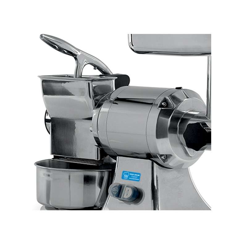 Los engranajes de la picadora de carne son de acero templado en baño de aceite y el grupo motor asíncrono es ventilado con protección térmica.