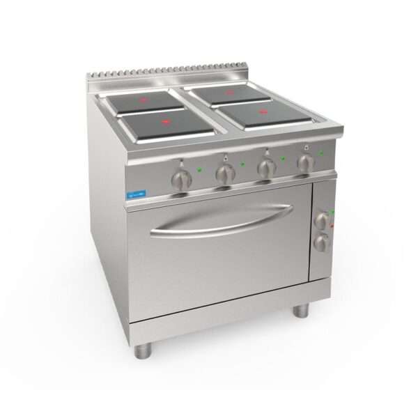 Placa de cocción eléctrica 4 placas de 4 kw 300×300 mm sobre horno eléctrico GN 2/1 potencia 5,48 kw