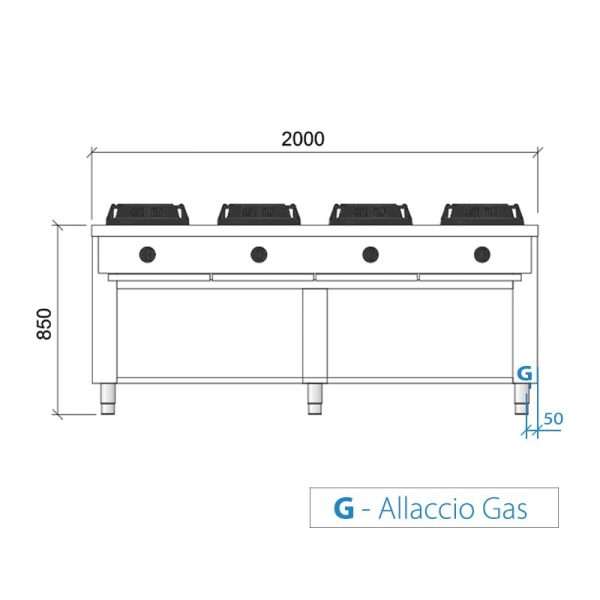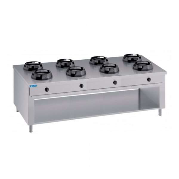 Placa de gas para wok bifronte sobre mueble con n° 8 quemadores – longitud 2000 mm