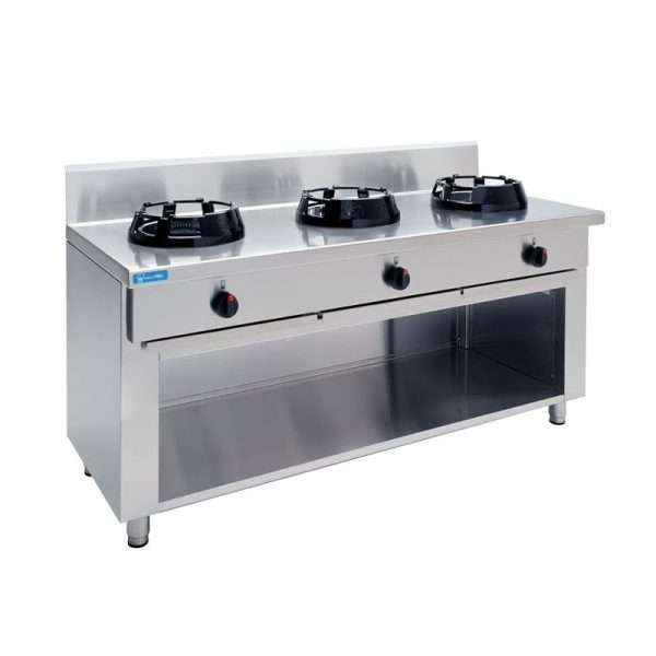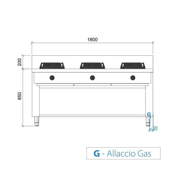 Placa de gas para wok sobre mueble con n° 3 quemadores – longitud 1800 mm