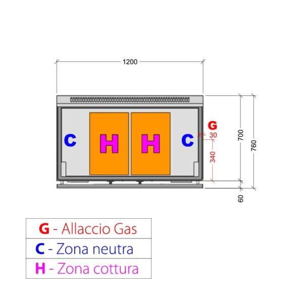 Placa de gas para wok sobre mueble con n° 2 quemadores – longitud 1000 mm