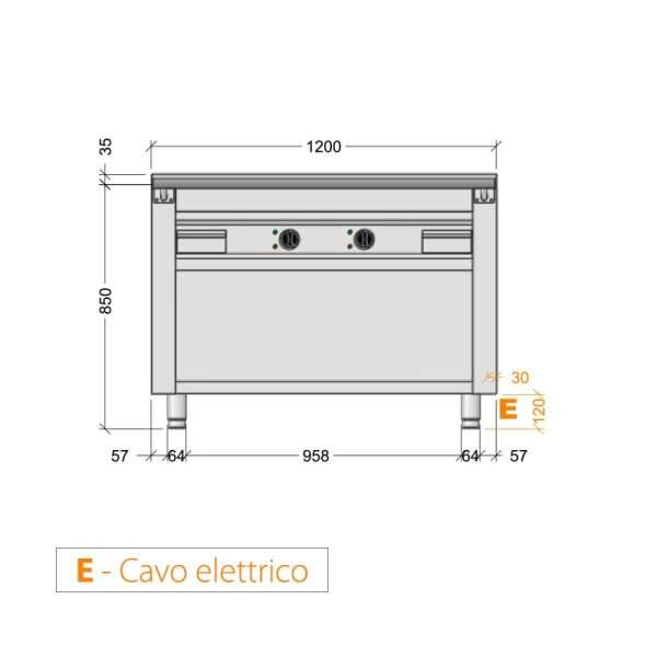 Plancha teppanyaki de AISI 430 eléctrica sobre mueble con 2 zonas de cocción – longitud 1200 mm