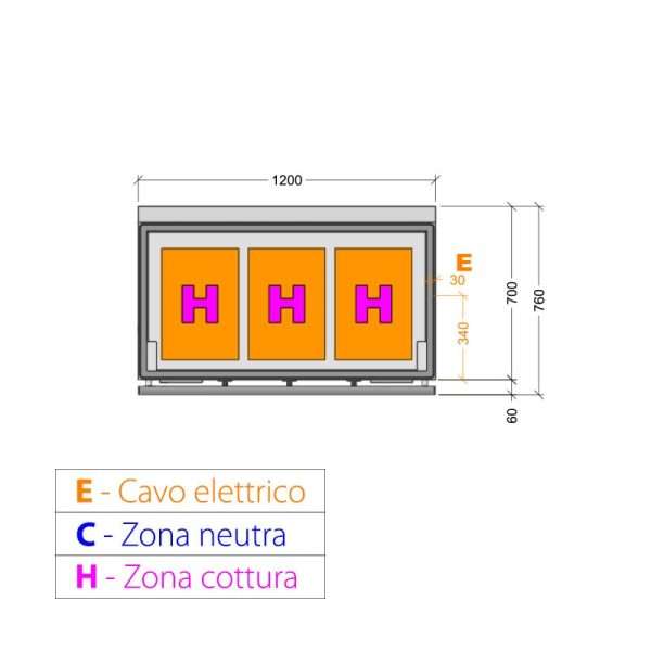 Plancha teppanyaki de AISI 430 eléctrica sobre mueble con 3 zonas de cocción – longitud 1200 mm