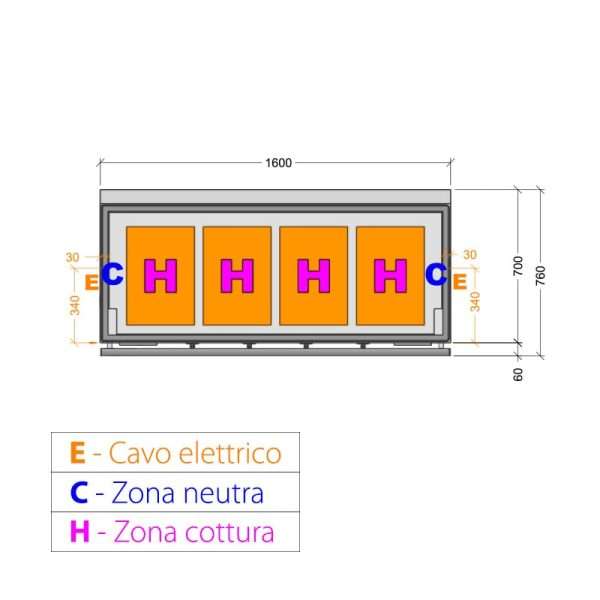 Plancha teppanyaki de AISI 430 eléctrica sobre mueble con 4 zonas de cocción – longitud 1600 mm