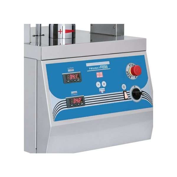 Prensa ideal para la formación rápida de discos de pizza, equipada con planchas de acero inoxidable y temperatura ajustable por separado.