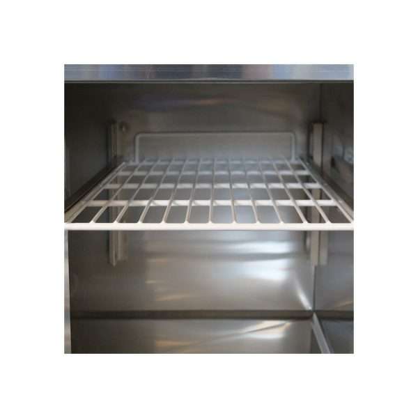 Saladette de refrigeración estática con n° 2 puertas y superficie de trabajo de acero inoxidable – temp. de +2°C a +8°C