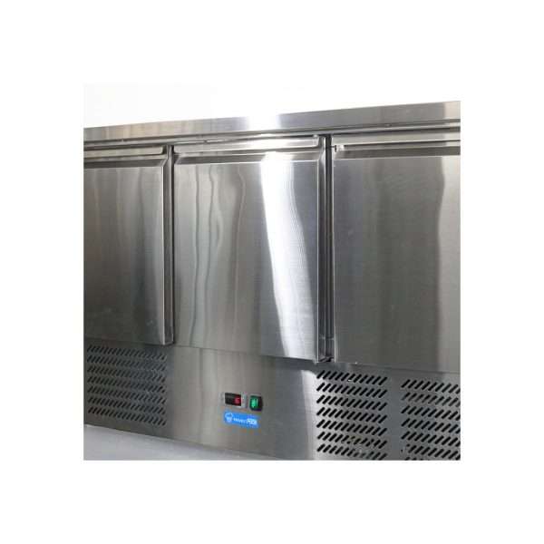 Saladette de refrigeración estática con n° 3 puertas y superficie de trabajo de acero inoxidable – temp. de +2°C a +8°C
