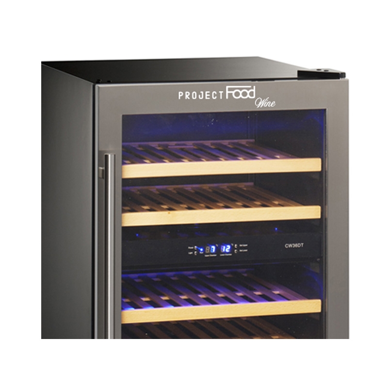 Vinoteca premium doble temperatura de refrigeración ventilada para 104 botellas – rejillas de acero a ”Z”