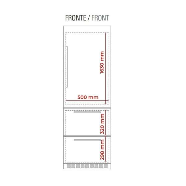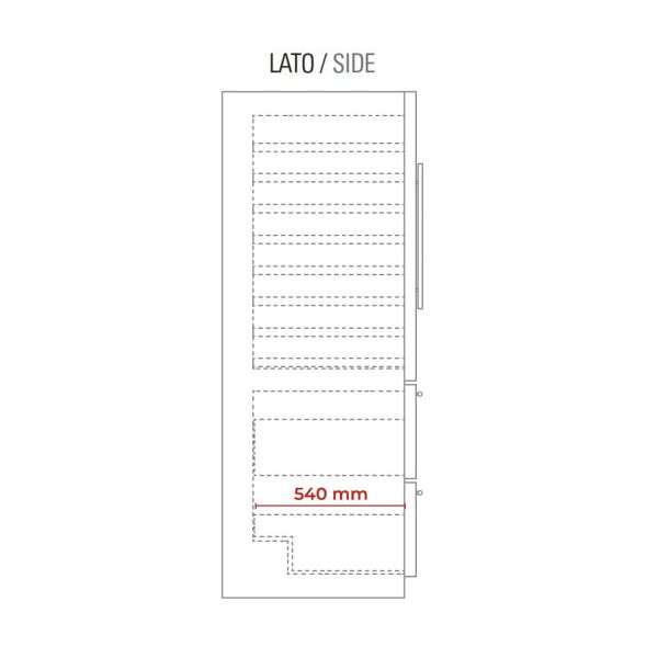La vinoteca tiene un compartimento superior con puerta de vidrio, cuyas dimensiones interiores son L510xP540xH815 mm.