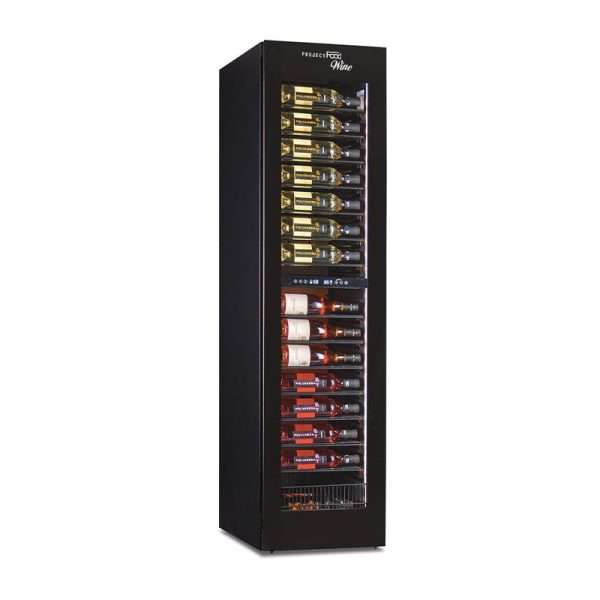 Vinoteca full optional de refrigeración estática con agitador para 126 botellas – rejillas plastificadas negras