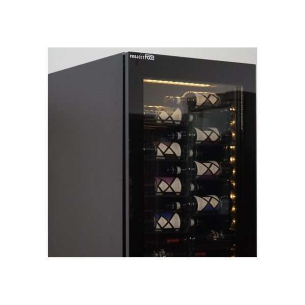 Vinoteca luxury con 3 lados de vidrio de refrigeración estática para 84 botellas made in italy – rejillas plastificadas negras