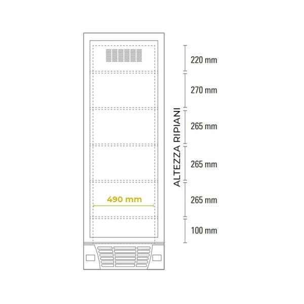 Vitrina expositiva ventilada todo vidrio con 4 estantes Ø 53 cm temp. de +2°C a +8°C – capacidad 400 lt