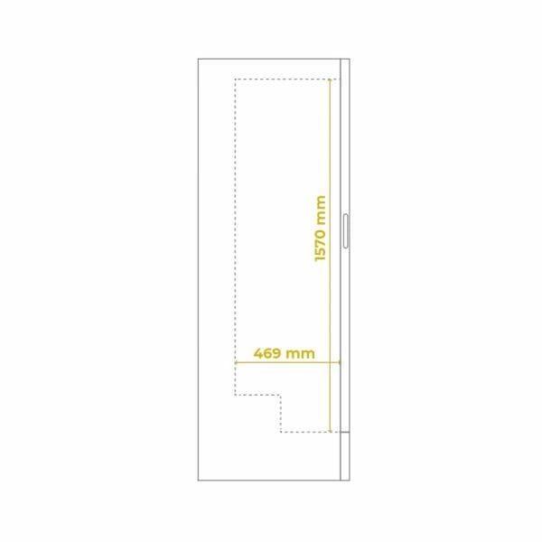 En el interior, la vitrina cuenta con 5 estantes fijos para poder presentar mejor los productos, también está equipado con una tira de led horizontal.