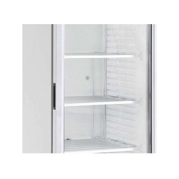 Vitrina expositiva estática blanca con agitador con puerta de vidrio y 7 estantes temp. de -15°C a -20°C – capacidad 300 lt