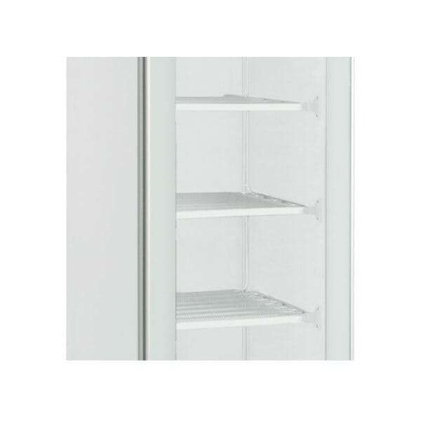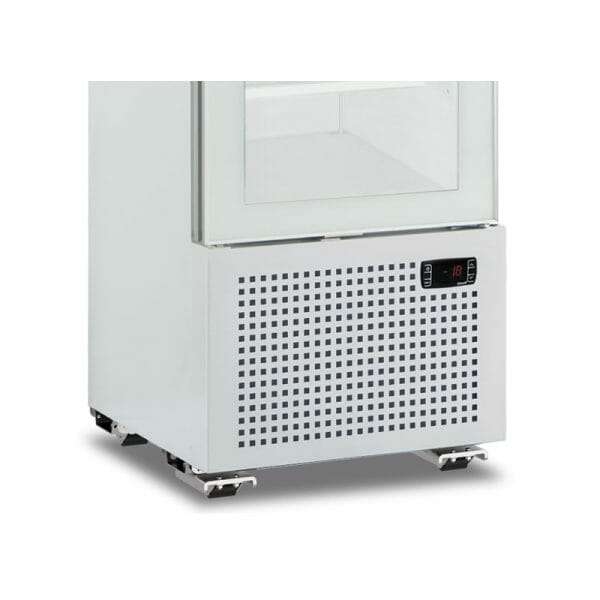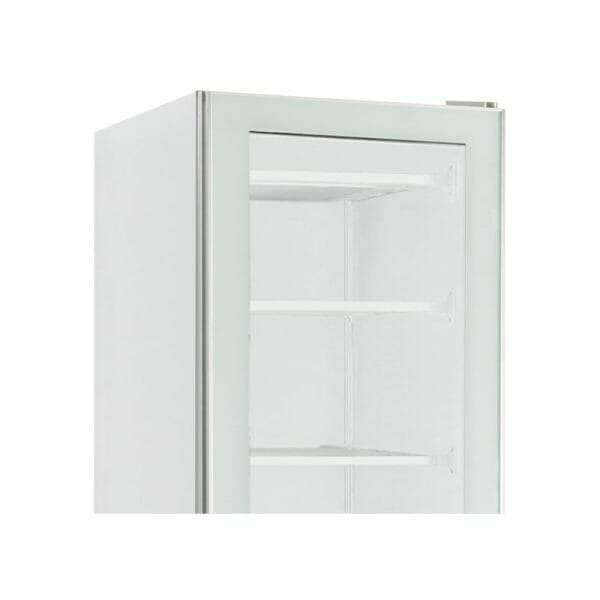 Vitrina expositiva estática blanca con agitador con puerta de vidrio y 7 estantes temp. de -15°C a -20°C – capacidad 300 lt