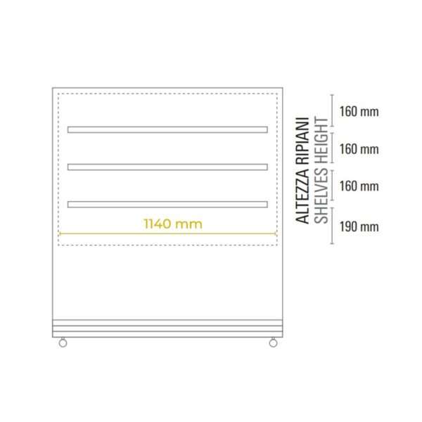 Vitrina expositiva horizontal ventilada temp. de +2°C a +10°C L1200xP740xH1300 mm – línea OMEGA