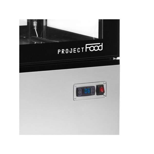 La temperatura es positiva y se puede regular de 0°C a +12°C y se puede gestionar y controlar fácilmente mediante un termostato digital en la parte inferior del expositor.