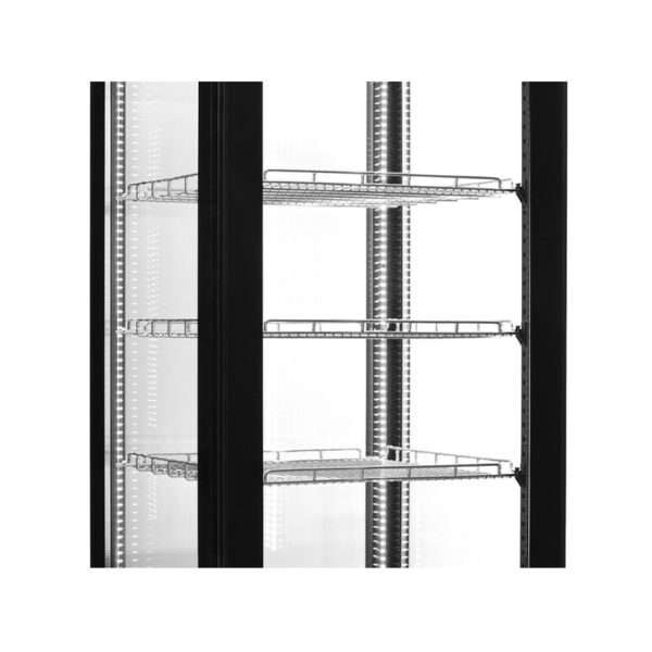 Vitrina expositiva negra no frost con 4 lados de vidrio y 5 estantes temp. de -18°C a -21°C – capacidad 624 lt