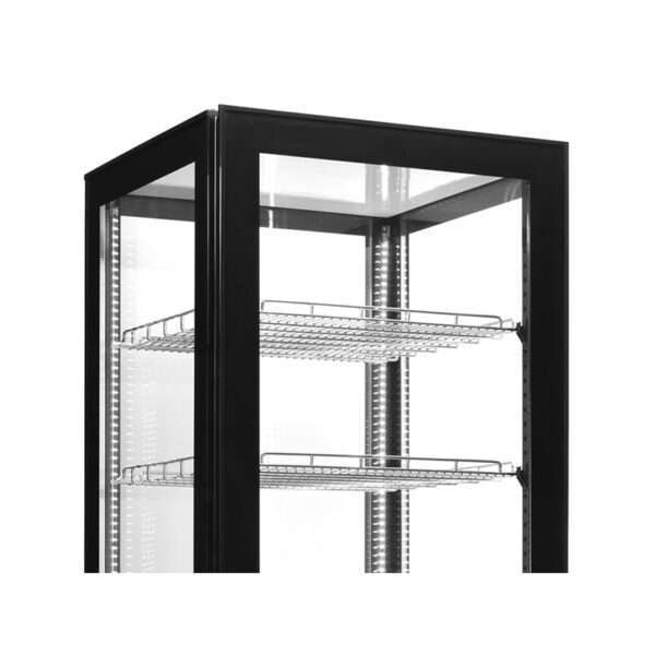 Vitrina expositiva negra no frost con 4 lados de vidrio y 5 estantes temp. de 0°C a +10°C – capacidad 452 lt