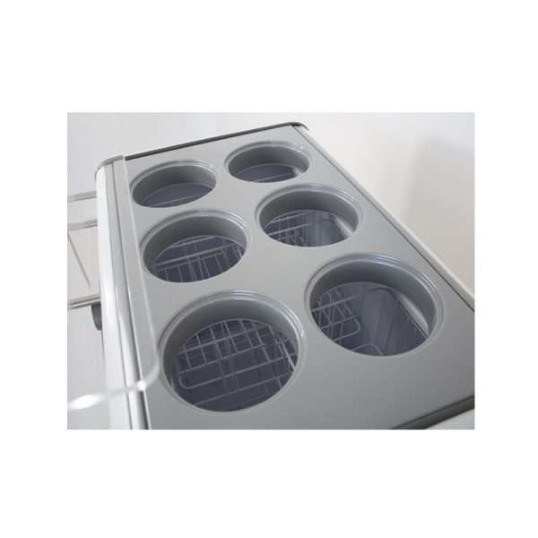 Vitrina helado blanca para 6 carapinas de 7,5 lt + 4 de reserva temp. de -5°C a -20°C