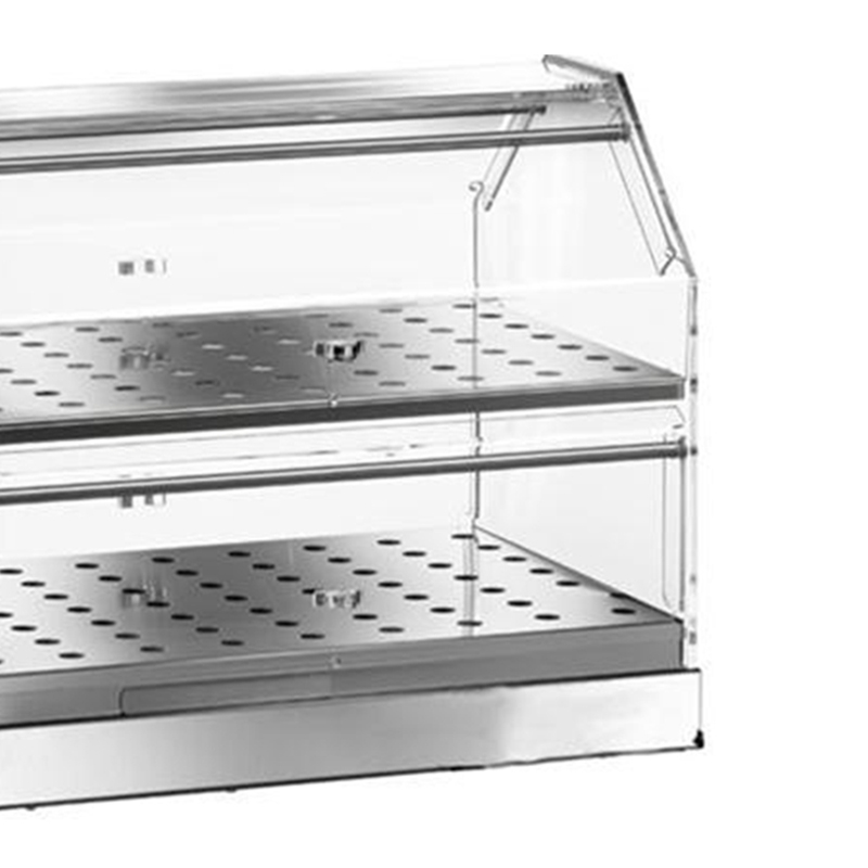 Vitrina bar neutra de sobremesa para brioches de plexiglás y acero inoxidable, 2 estantes, longitud 50 cm