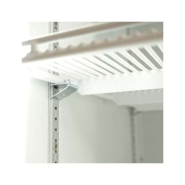 - N.8 estantes plastificados (L605 x P410 mm): ajustables para una disposición versátil de los productos.