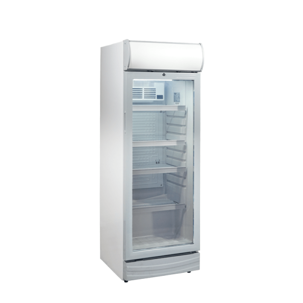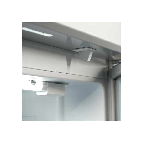 - Puerta batiente con cierre con llave: equipada con vidrio doble templado y marco de ABS, asegura una visibilidad perfecta de los productos y un excelente aislamiento térmico.